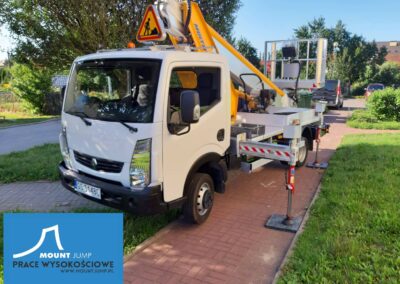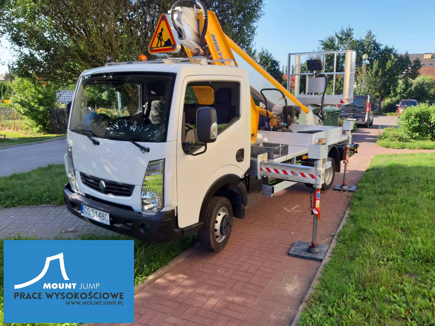Na naszym wyposażeniu znajduje się podnośnik koszowy Multitel MT202 na podwoziu firmy Renault. Jest to sprawdzona i pewna, a zarazem kompaktowa maszyna, która poradzi sobie z każdym zadaniem. Legitymuje się wysokością roboczą rzędu 20m i wysięgiem 9.80m. Istnieje możliwość jego wynajęcia wraz z uprawnionym do jego obsługi operatorem, który zadba o odpowiednie przygotowanie miejsca pracy i bezpieczeństwo w jej trakcie. Świadczymy cykliczne usługi stałe oraz wykonujemy zlecenia jednorazowe.