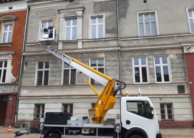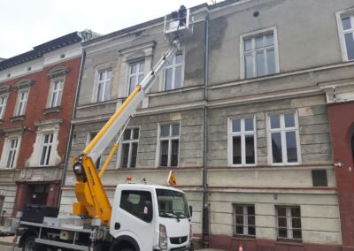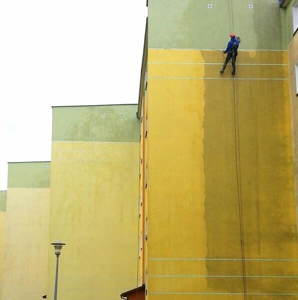 W zakresie świadczonych przez naszą firmę usług znajdują się również prace na elewacjach budynków. Zadania takie wykonujemy zarówno przy pomocy podnośnika koszowego jak i w dostępie linowym. Świetnie radzimy sobie z myciem ciśnieniowym fasad budynków, malowaniem natryskowym, konserwacją elewacji, czy też drobnymi naprawami.