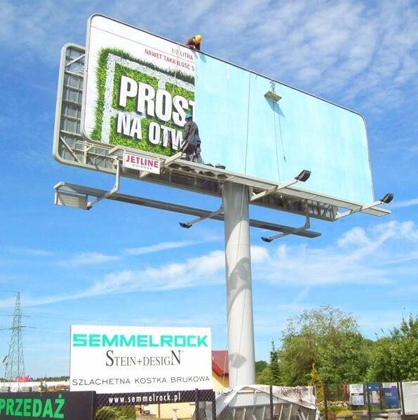 Z nami Twoja reklama zawiśnie wszędzie! Billboardy, konstrukcje reklamowe na fasadach budynków czy pylony nie stanowią dla nas problemu. Pracując w dostępie linowym oraz z pomocą podnośnika bez problemu umieścimy Twoją reklamę nawet w najtrudniejszym miejscu! Każde zamówienie wyceniamy indywidualnie na podstawie czynników, które mają wpływ na sposób jego realizacji. Wykonujemy zlecenia cykliczne, jak i pojedyncze. Komunikacja to podstawa, a sama wycena oczywiście jest darmowa i niezobowiązująca.