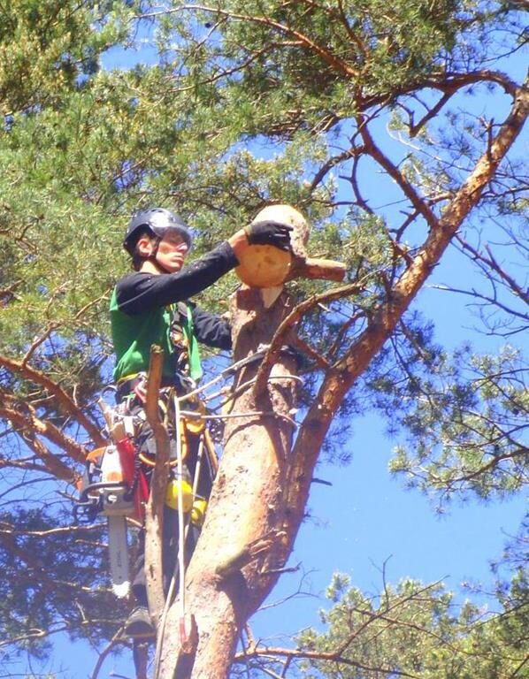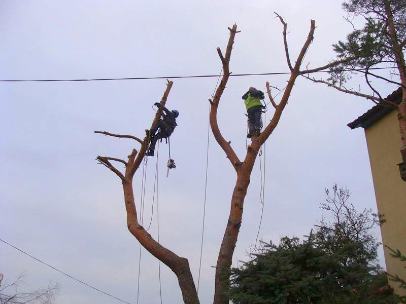 Wykorzystując techniki alpinistyczne jesteśmy w stanie bezpiecznie – kawałek po kawałku – usunąć drzewa rosnące w bezpośrednim sąsiedztwie budynków czy linii energetycznych, lub niebezpiecznie się nad nimi pochylające. Stosując szereg metod i procedur minimalizujemy do zera możliwość uszkodzenia czegokolwiek znajdującego się poniżej. Usuwamy również drzewa połamane na skutek wichur, czy takie które znajdują się w kolizji z zabudowaniami.